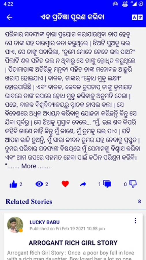 Inside this App has many functionalities you can do like, share, comment, dislike, and add a story to your favorite section.