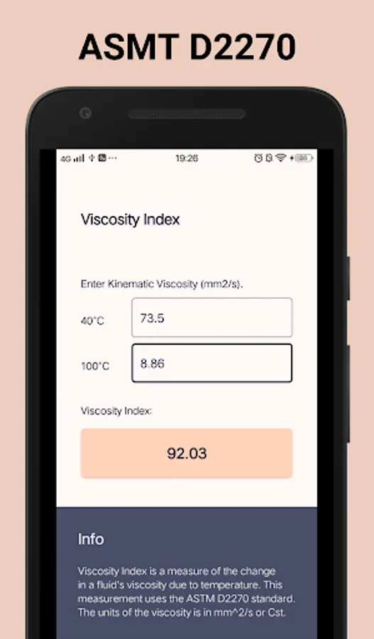 ViCalc is a free tool to calculate the viscosity index according to the ASTM D2270 standard and calculate the viscosity of a mix of fluids of differing proportions and viscosities.