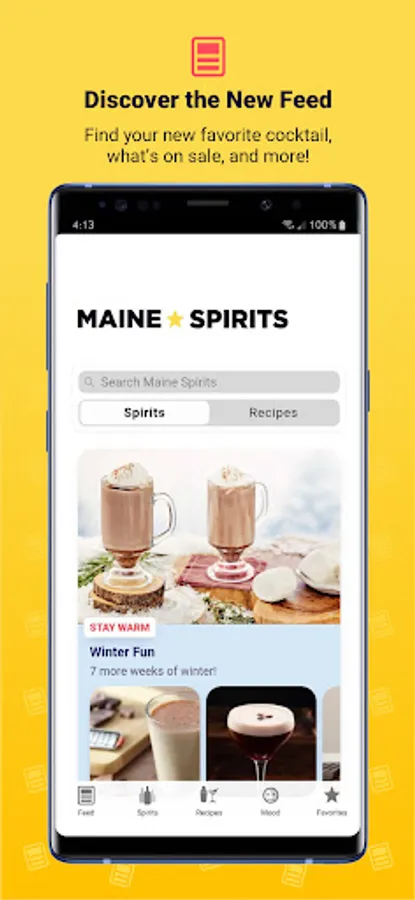 Discover exclusive cocktail recipes with the Maine Spirits App. Find your new favorites and save them for later. Explore unique twists on cocktails with our moods feature. Create a custom cocktail using the ingredients you already have on hand! Looking for an interesting margarita recipe? Browse our full recipe catalog. If you're looking for a specific spirit, the app will locate the nearest Maine Spirits Agency Store that stocks the spirit you're interested in.