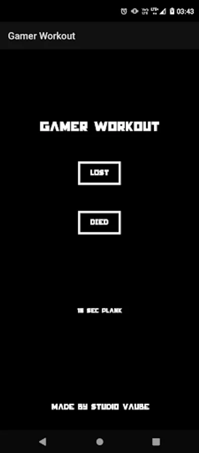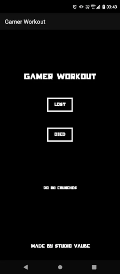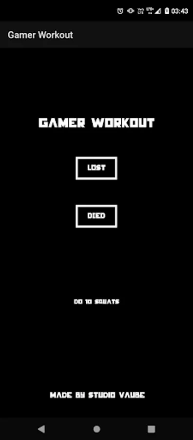The App has two buttons for when you have lost or died in your online games, If so you receive a set of workout instructions that when followed improve your health.
