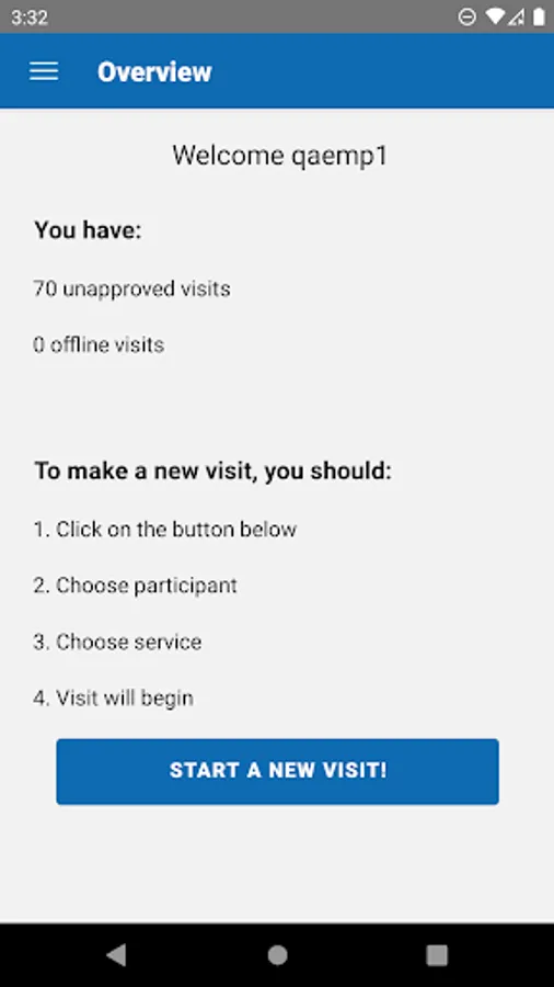 •While the app captures the start and end locations of the visit using GPS, it does not track the user during the visit. It simply takes a snapshot of the location when they start the visit and another snapshot when they click the end visit button.