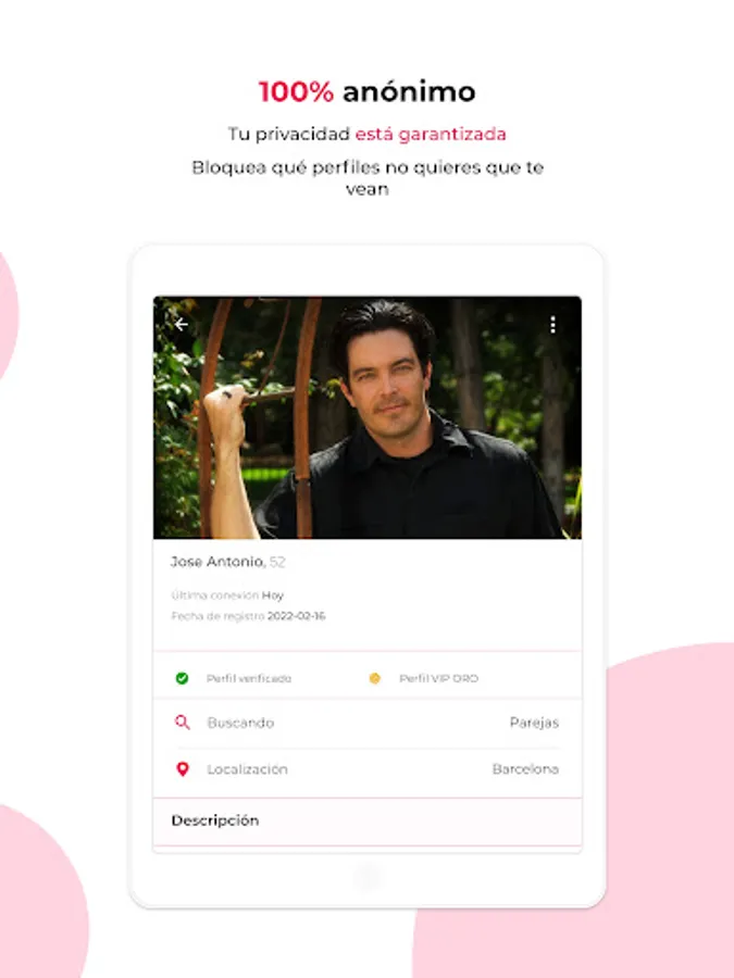 Locate people who are close to you, publish ads in the area where you are along with what you are looking for, search for users with your same interests or meet people already with our speed dating system (with swiping)