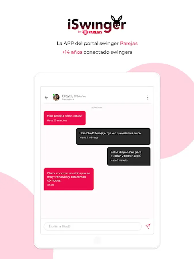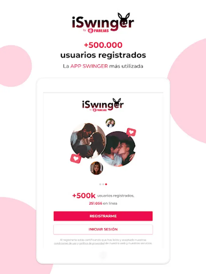 iSwinger by Parejas is the APP for swingers from the largest social network for liberal people on the internet (Couples Group). In it you will find all the girls, couples and boys registered with us. We are more than 1 million people!