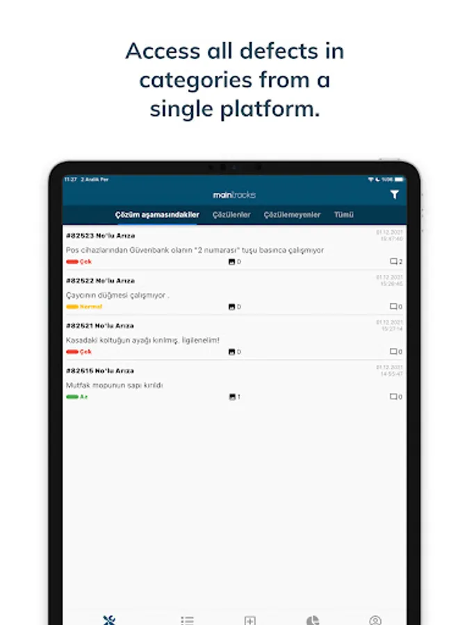 Maintracks is an online defect tracking system that facilitates the detection of defects in your business and you can learn the budget you have spent for defect and maintenance with a single click.