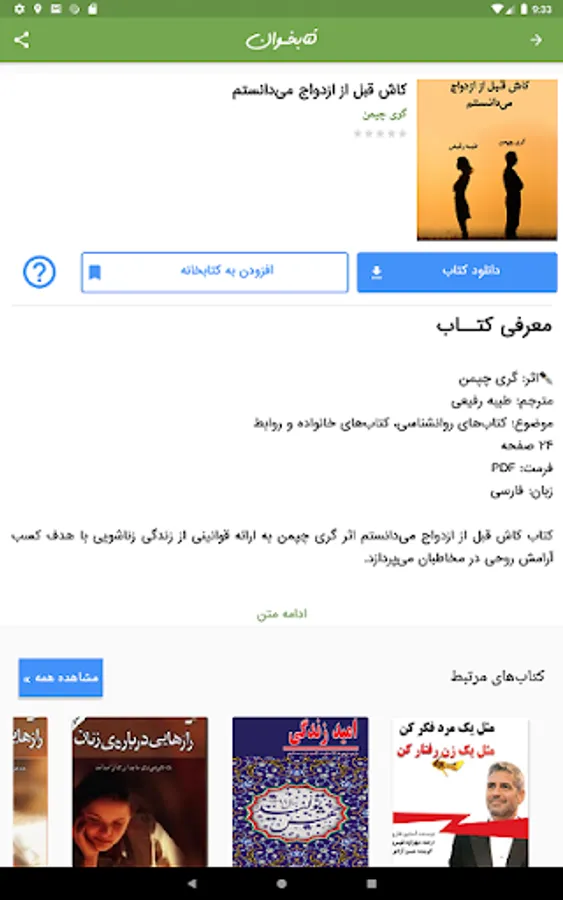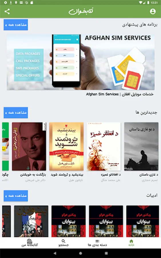 "Book Reader" allows you to download hundreds of books from sections such as stories, novels, literature, success and psychology, English books, and more. You can also easily download your favorite books using the "Book Reader" app.