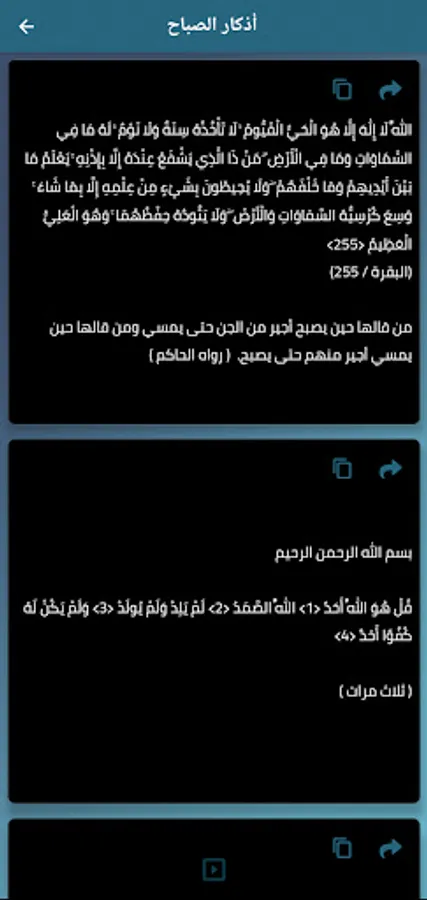 - Support copying and sharing any azkar card to your friends or anywhere else.