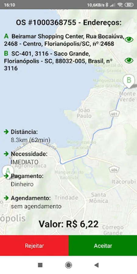 To use it, just accept the ride that will be sent through the carrier or by the applicant and click on start to be able to view on the map the routes that you can follow to reach the designated places.