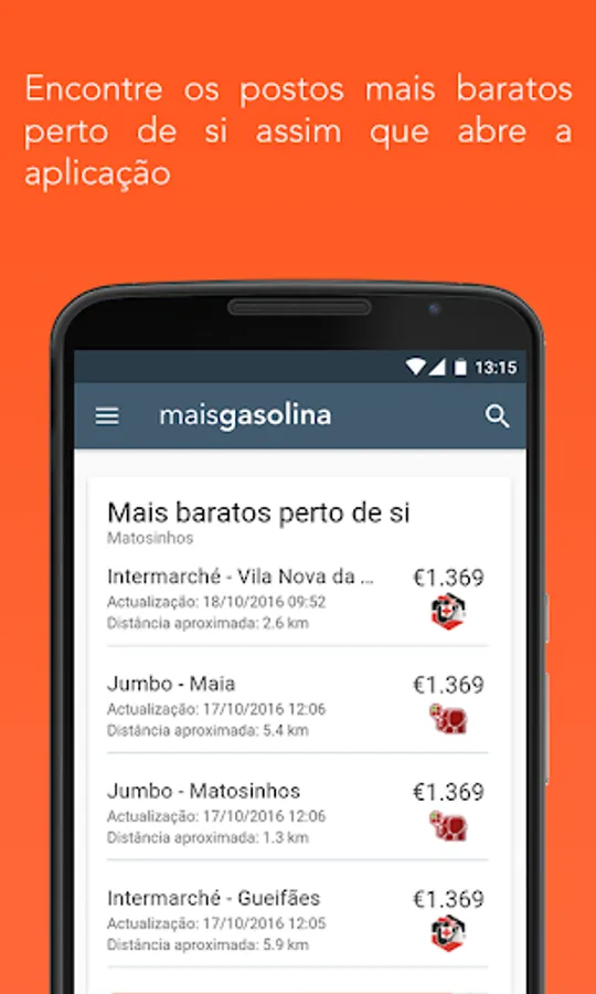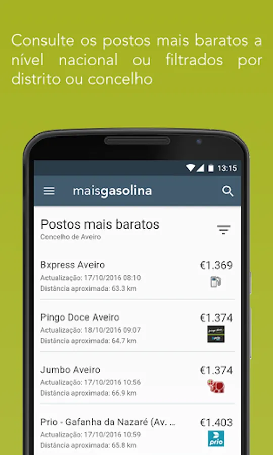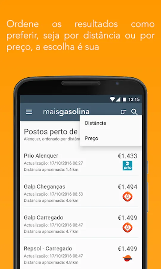 • Postos mais baratos perto de si, ordenados por distância ou preço