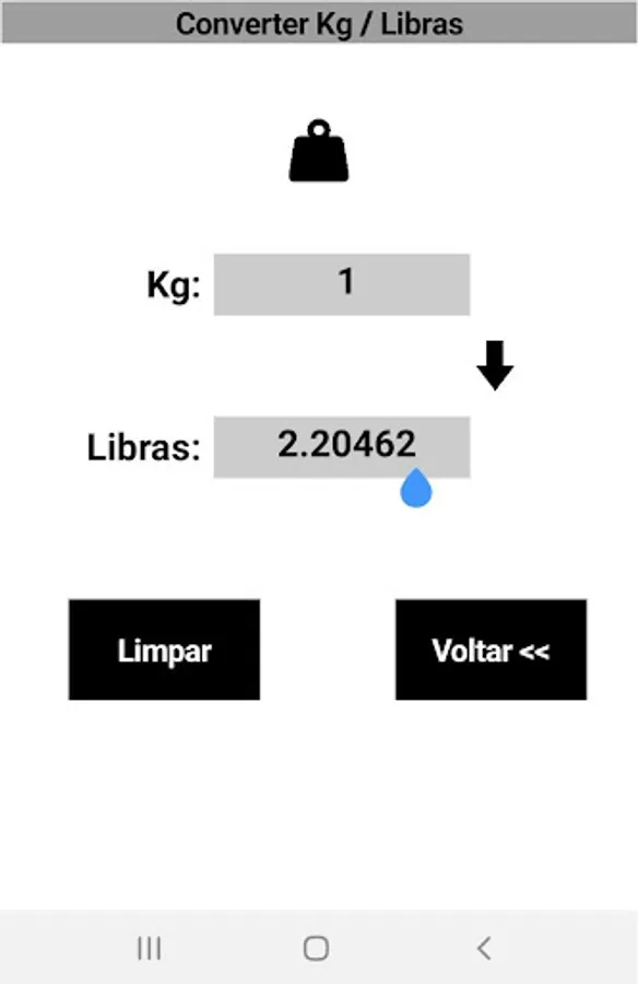 Informing the value in one field, this app already updates the other with the value after the conversion.