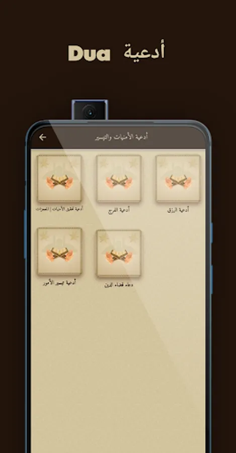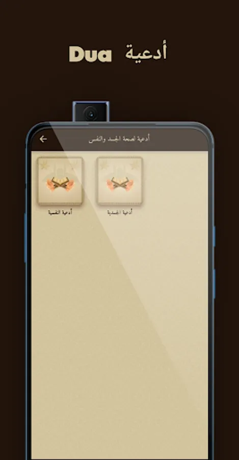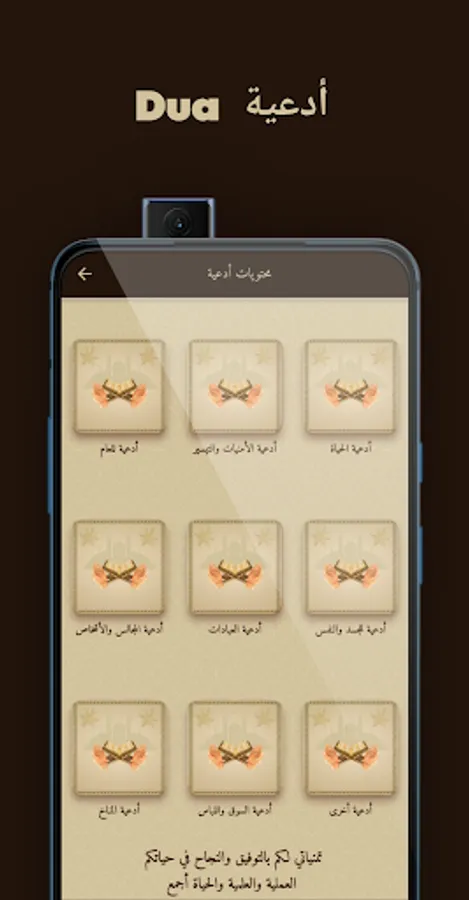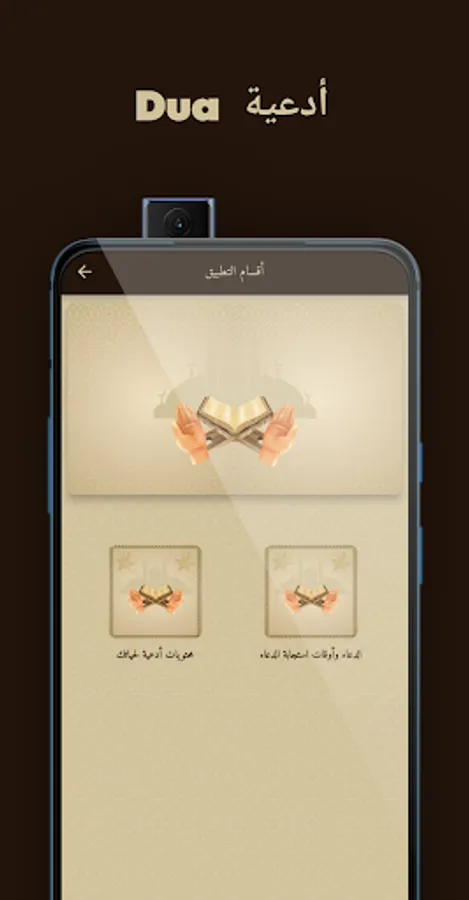 The supplications Dua أدعية application is divided into two parts: one for information on supplications Dua أدعية and response times, and another for the contents of supplications Dua أدعية.