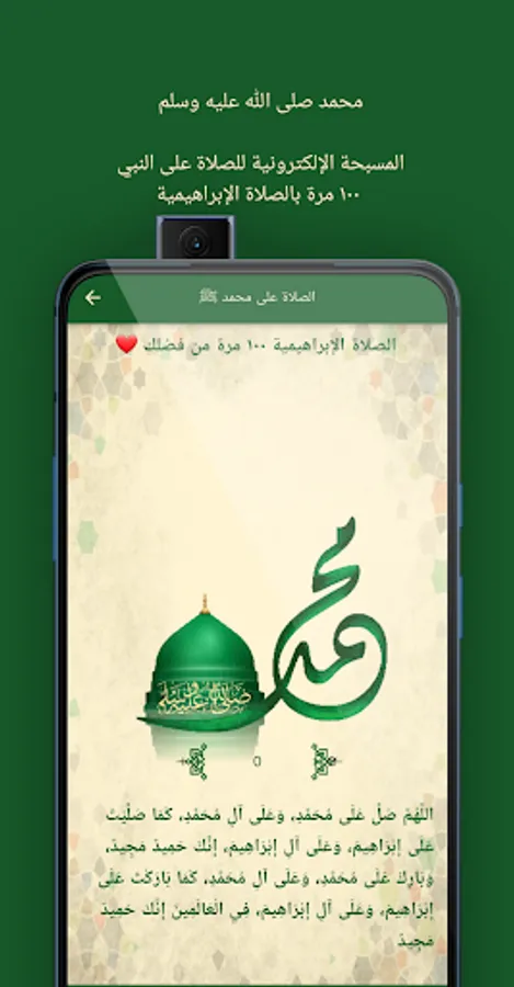 - An electronic Rosary/Tasbeeh so that you can pray for Muhammad peace be upon him محمد صلى الله عليه وسلم for 100 times in the form of the Abrahamic prayer, which we mention in prayer, as it has a great impact on human life and opens up a lot of good for him