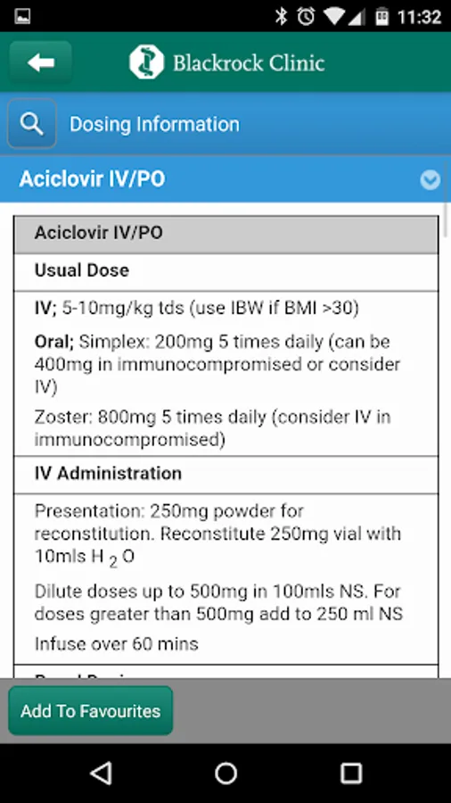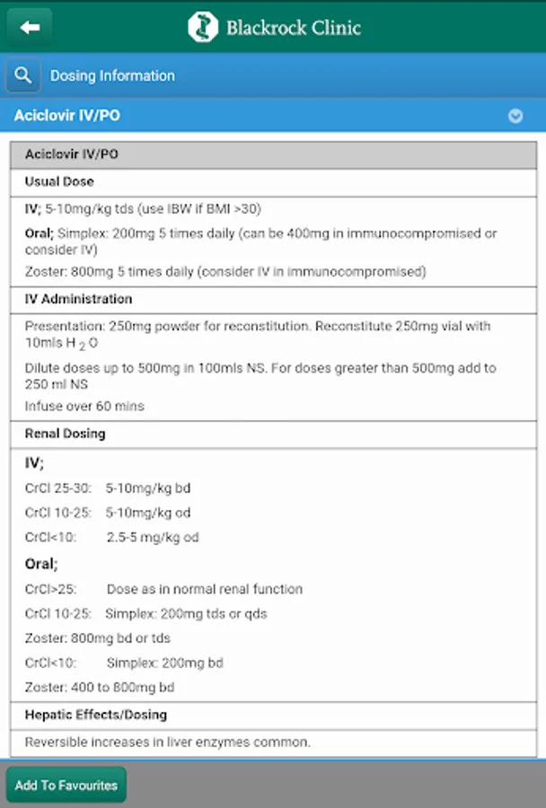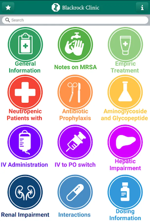 The Blackrock Clinic Antimicrobial Prescribing Guidelines are now available in mobile app format for smartphone devices. It includes practical evidence based guidelines on the appropriate use of antimicrobials for empiric antimicrobial treatment and prophylaxis in adult patients by body system, dosing calculators for renal function and for gentamicin and vancomycin dosing and much more. Contact the Pharmacy Department for username and password details.