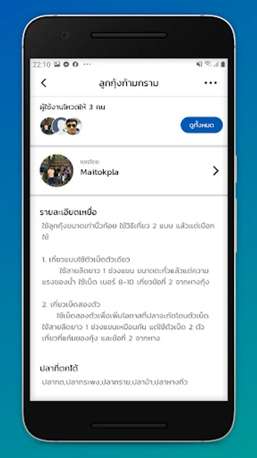 With the app, we focus on building a community of sharing for anglers, will all the functions of the app work well? Depends on the kindness of the fisherman's aunt as well The team therefore expects this app to be useful to friends. Who love fishing everyone If there are any errors, we apologize here too.