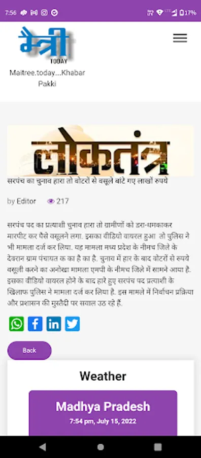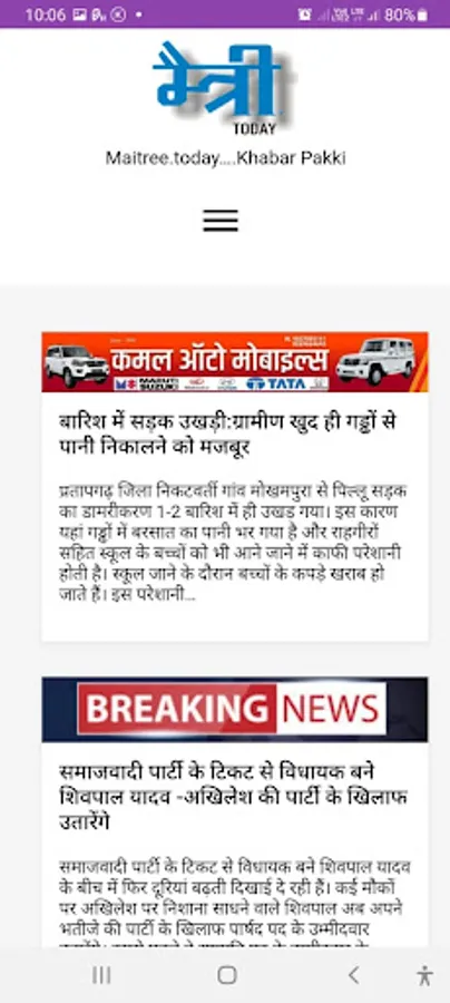 Maitree Today is most popular News App .You van view all types of news on one click like Bollywood news , Politics news, News of states , Local News .