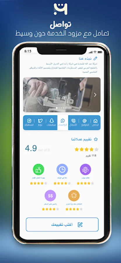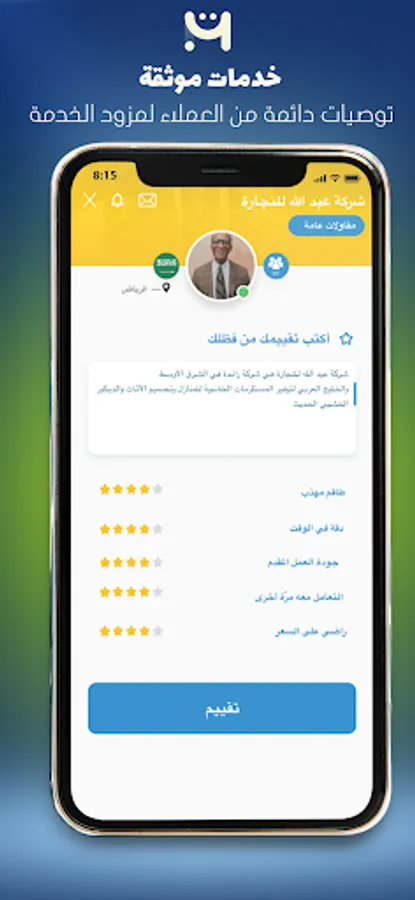 With the Majalat Tech application, you can easily search for all the services available in your area (workers and craftsmen, food and events, cleaning and home, public services, tourism, transportation, information and communication technology, vehicles, education and training, health and beauty, and commercial market services) to find the closest to you Without the trouble of searching and to be able to communicate directly with the service provider without any additional commission
