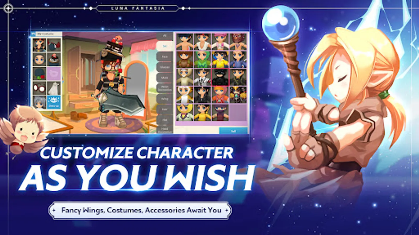 Luna Fantasia is an MMORPG mobile game that tells the story of the battle between races of Humans and Elves to possess five-colored stones that have extraordinary powers in the new world, Blueland.