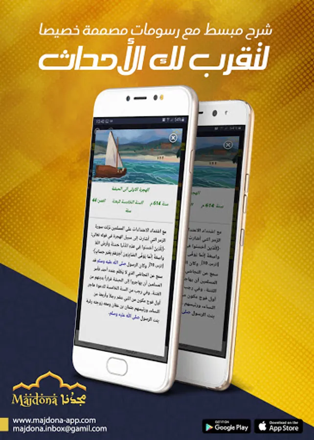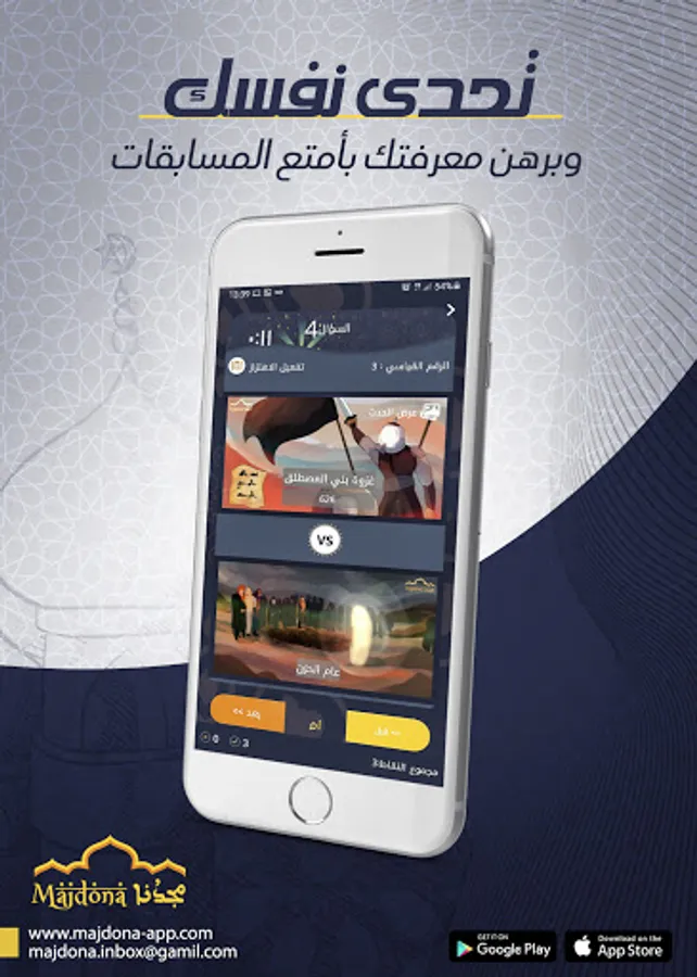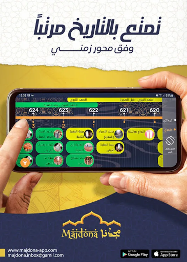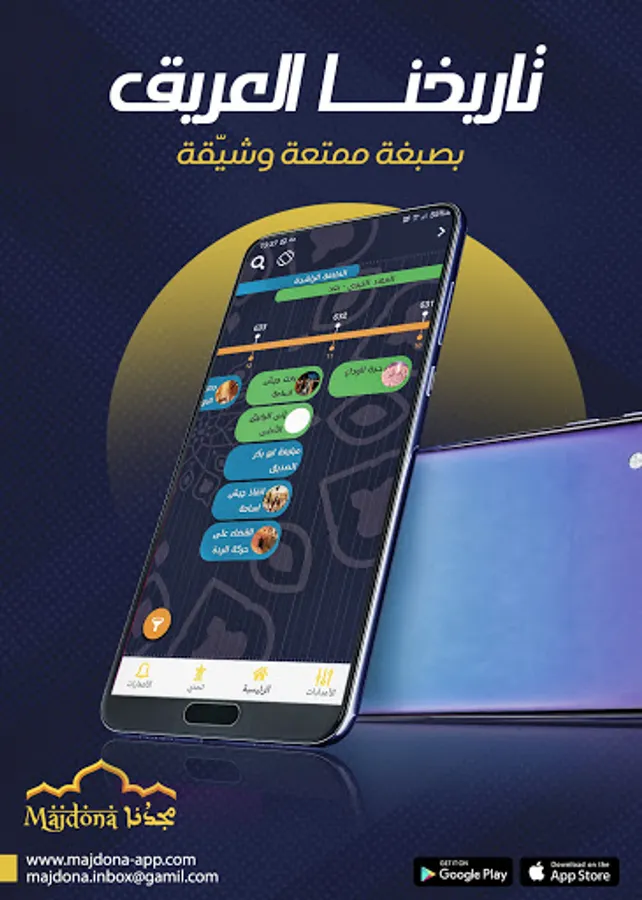 Our Majdona - our glory - app is the first application of its kind that displays the history of Islamic civilization in an interesting and distinctive way by displaying historical events and epochs in an easy, coordinated timeline. With search and filter capabilities, in addition to a special section for challenges and examining information according to multiple levels.