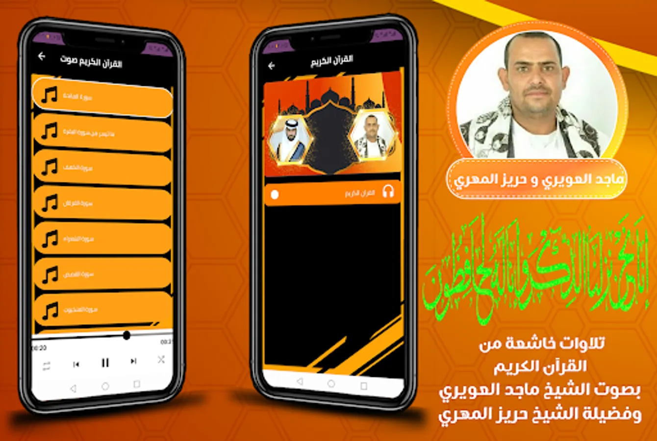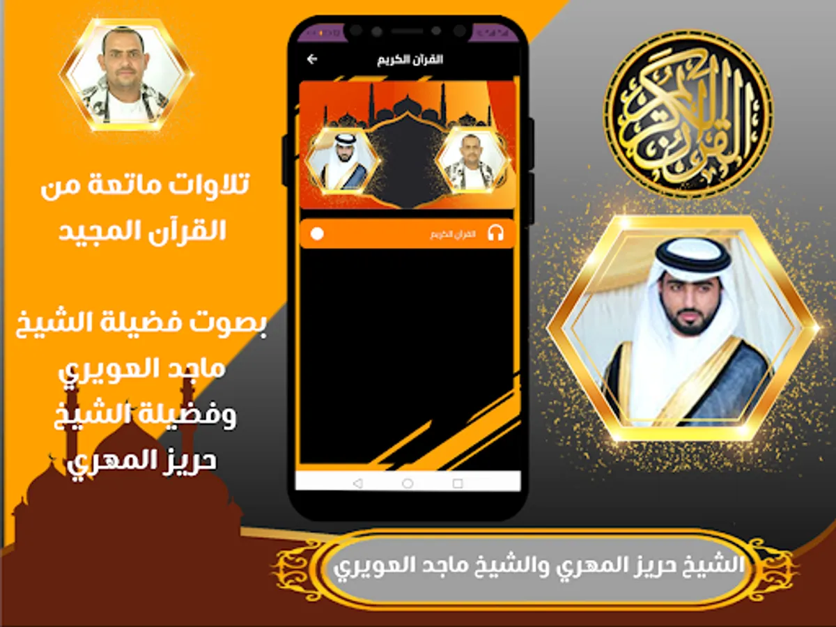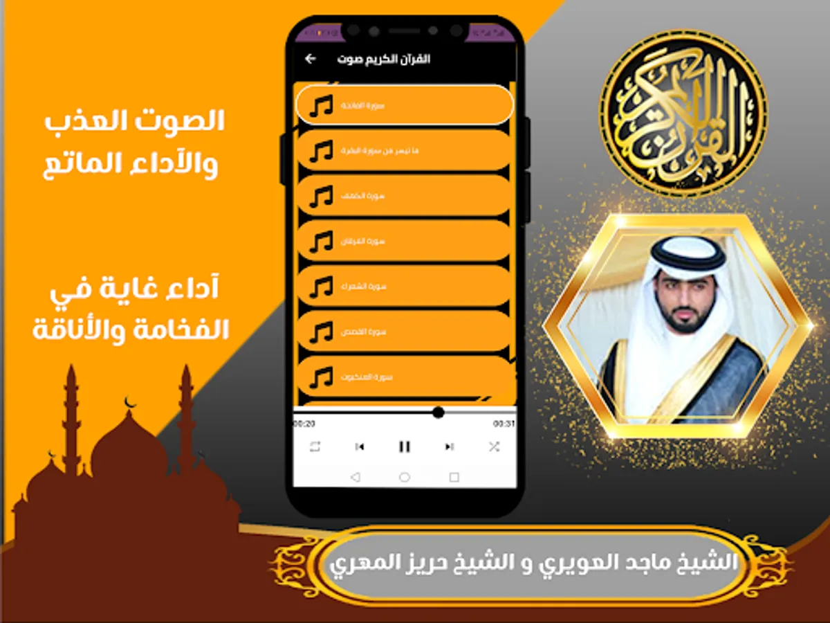 The application of reciting the Noble Qur’an, Sheikh Majid Al-Awery and the reader Hariz Al-Mahri, allows you to hear and download the Noble Qur’an with the voice of the reciter Sheikh Majid Al-Owairy and Hariz Zanaboot Al-Mahri, and you can download the Holy Qur’an to your mobile phone easily and conveniently through one application that includes some surahs of the Holy Quran mp3 in the voice of Sheikh Majid Al-Owairi and the reader Hariz Al Mahri