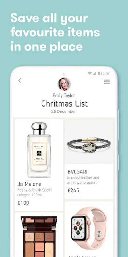 • Create lists for any occasion, all list can be customised to be viewed by only the people you want