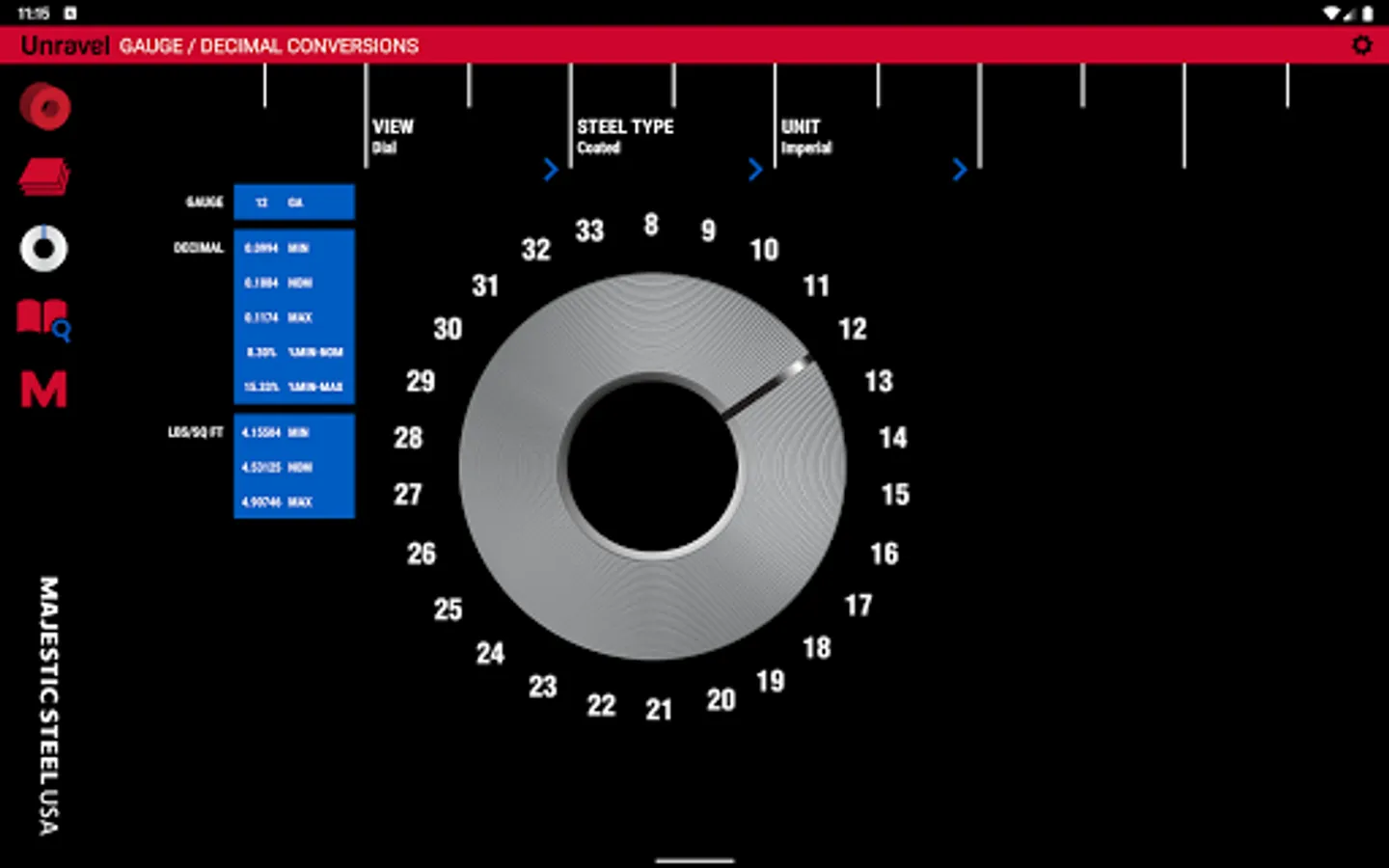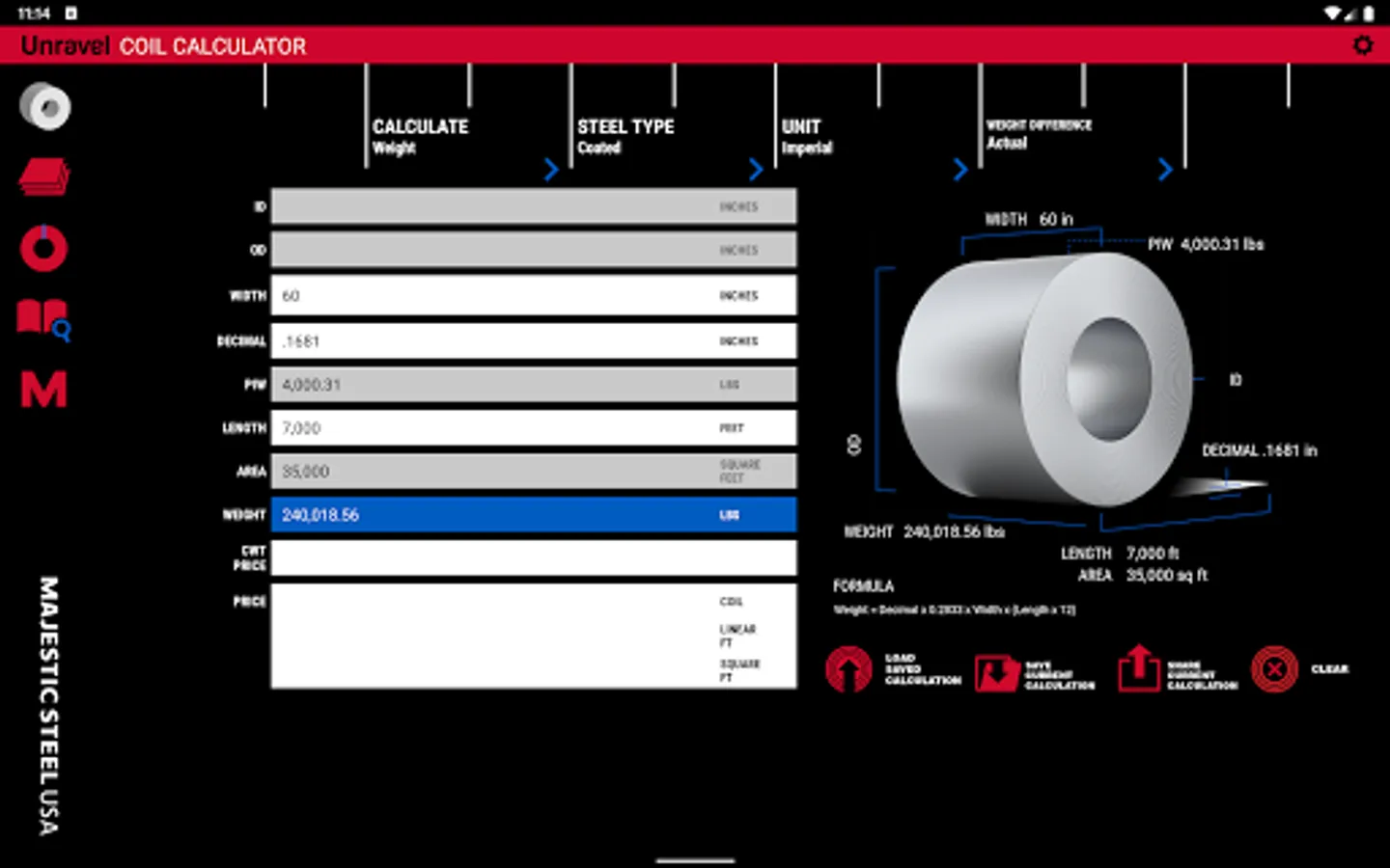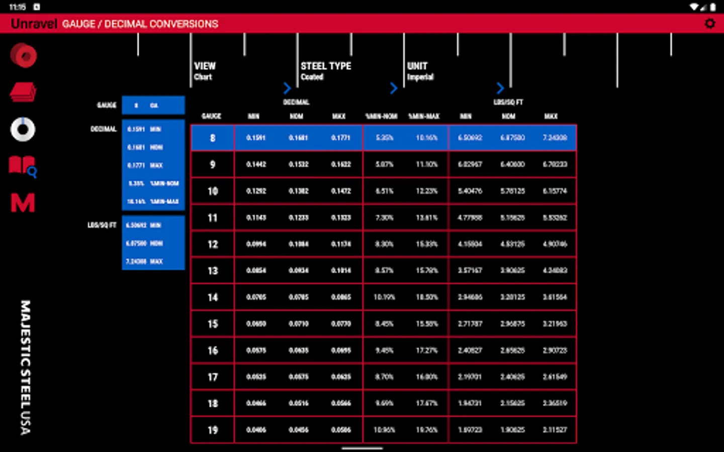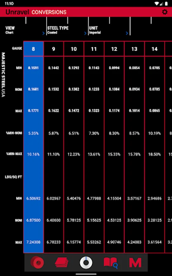 Works with all coated and uncoated steel. Use this app for quick and simple weight, cost and yield calculations. Available in the Android Market, iTunes App Store and Kindle Store.
