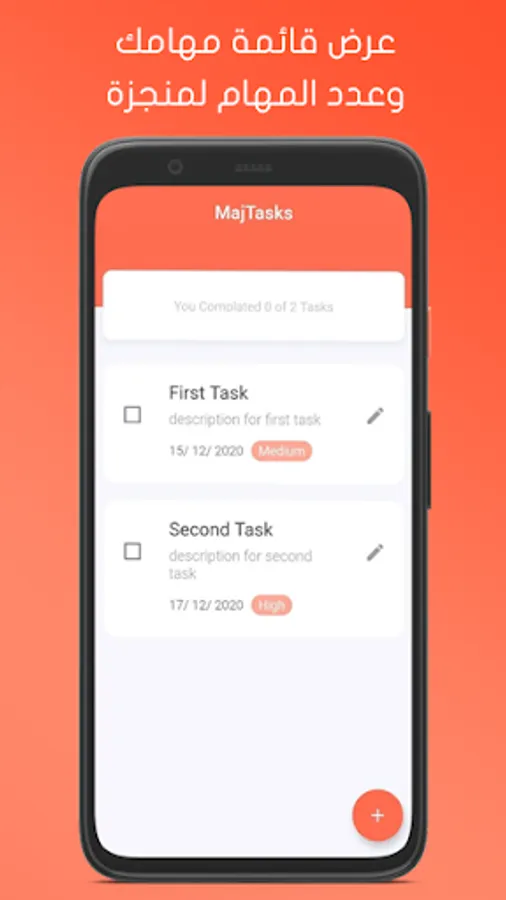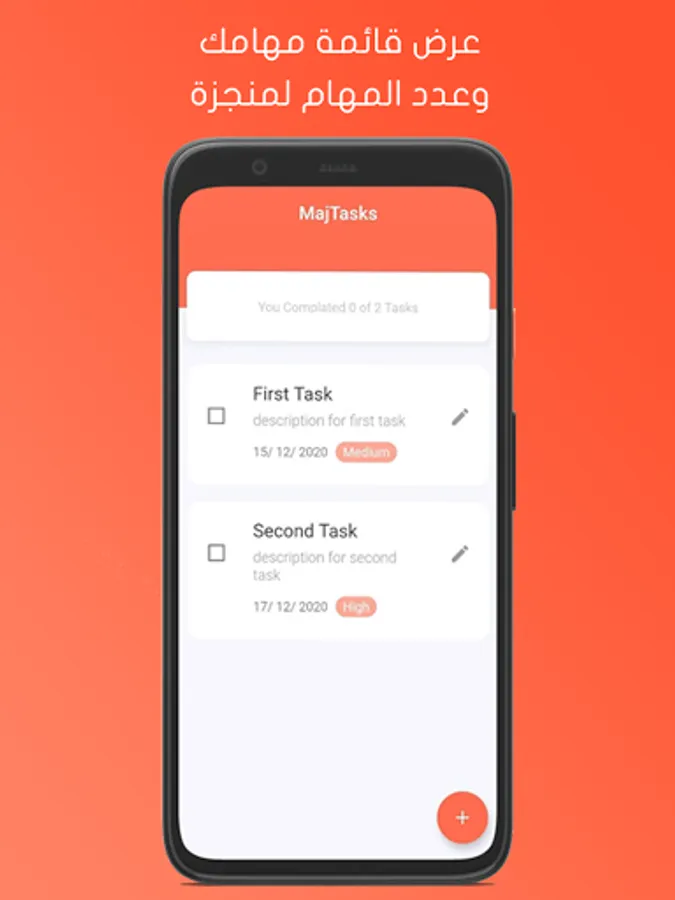 تطبيق "Majtasks" المتوافق مع الأجهزة الجوّالة هو خير وسيلة تتيح لك إنجاز المزيد من المهام وإدارتها ومتابعتها وتعديلها في أي وقت،