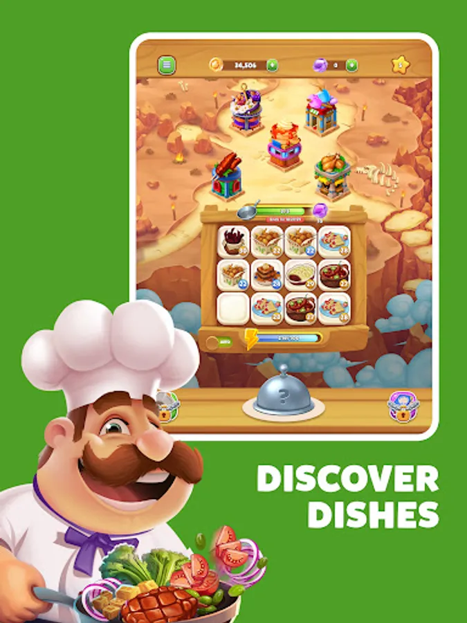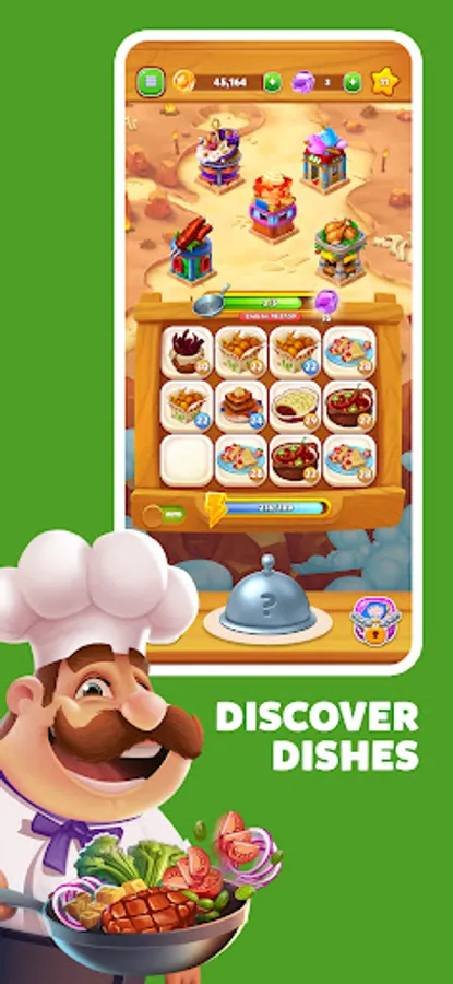 In this free game, you can merge food items by tapping the dish generator and merging identical dishes. The more you merge in this dream chef game, the better your parks will evolve. You can also unlock new special prizes through the magical Cloche to help you build your restaurant empire and become the greatest chef of all time.
