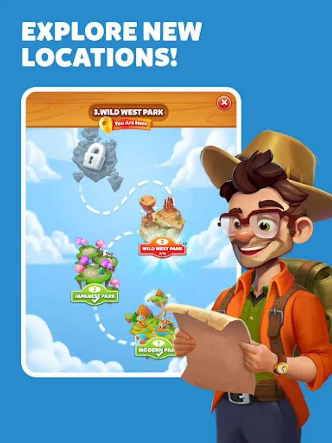 As you progress through the merge game, you'll have the opportunity to visit different locations, including gardens, mansions, hotels, islands, adventures, and counties.