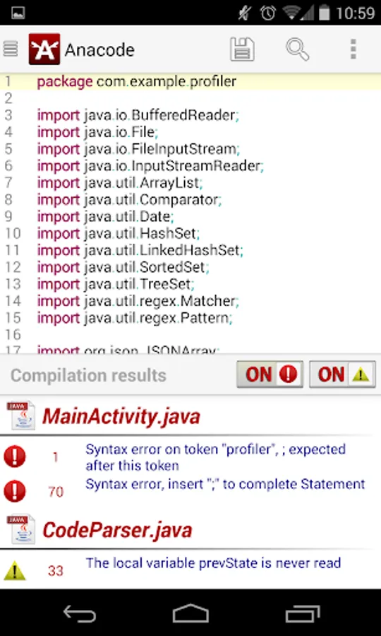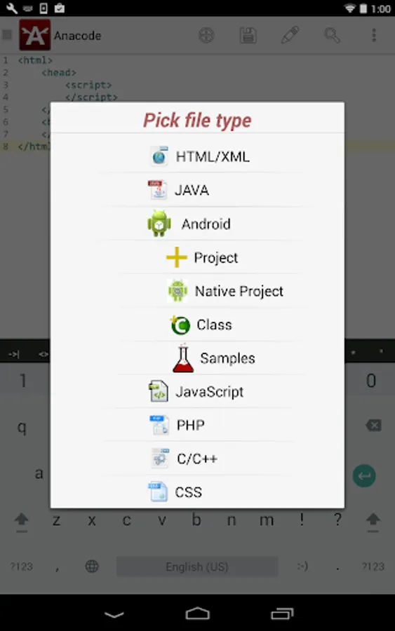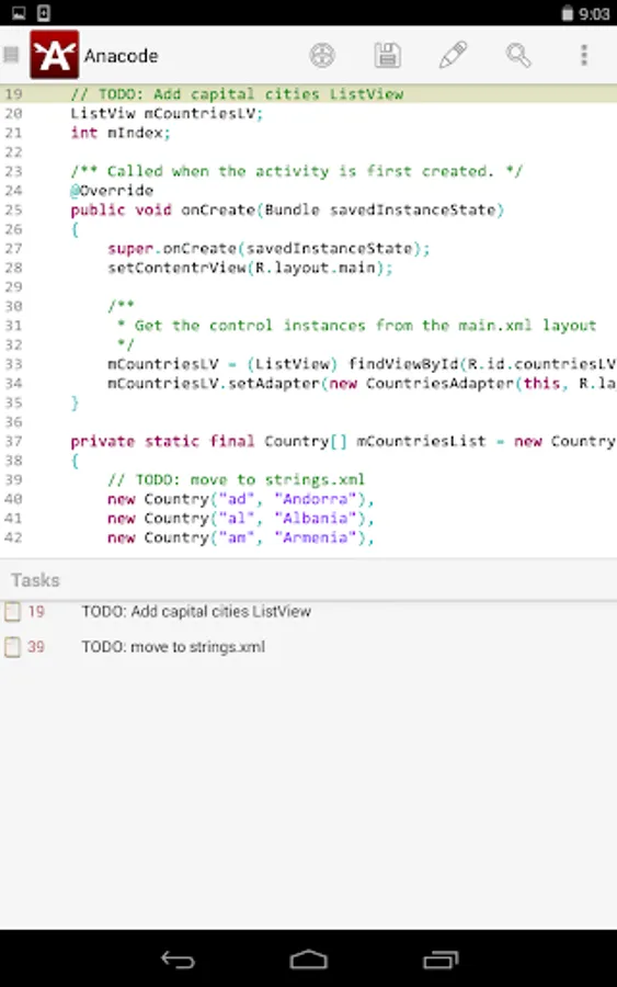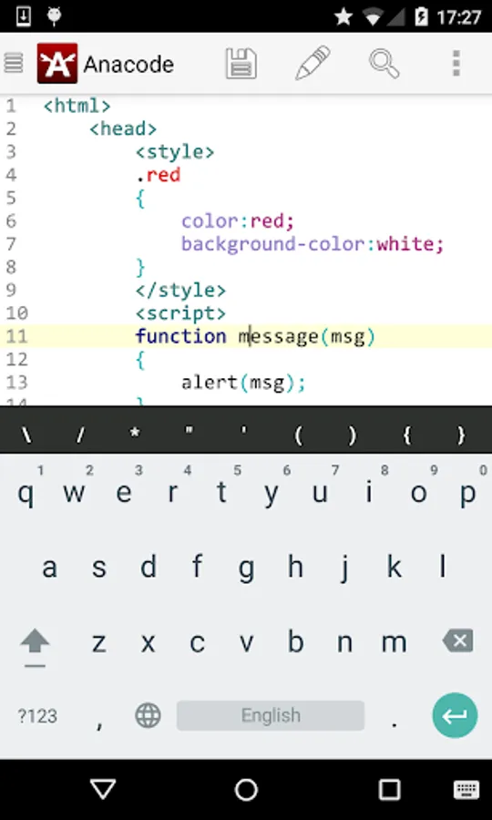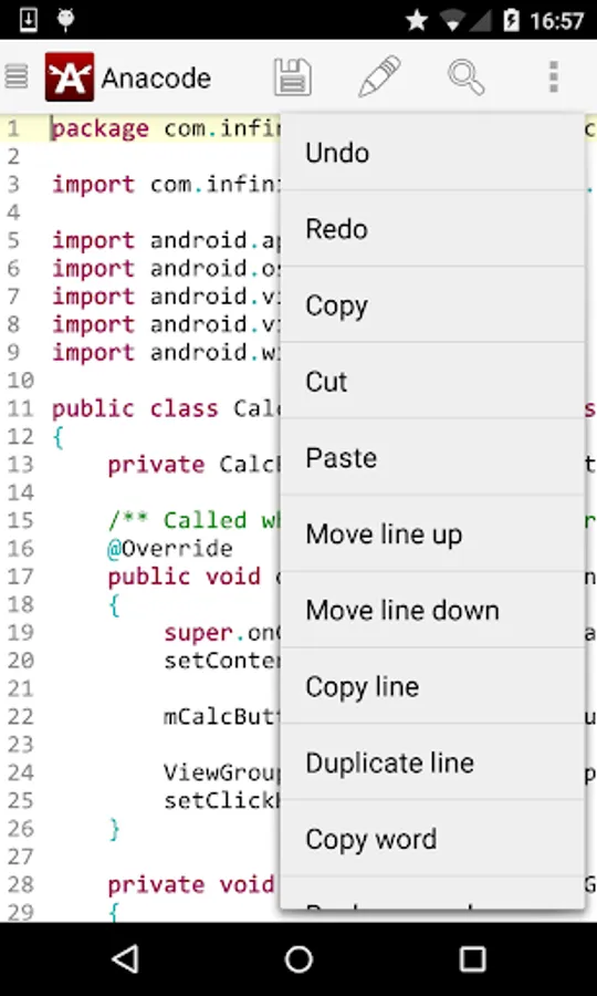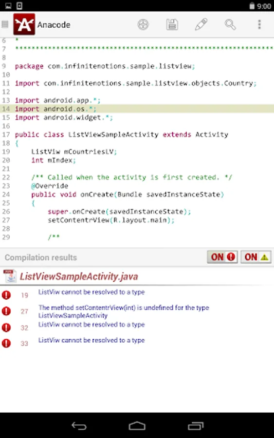 Anacode is an integrated development environment and source code editor for JAVA, HTML, CSS, PHP, JavaScript and C/C++ files that allows you to build and run Android applications directly on the device. Anacode can directly build an APK from your android project source code by single click on the "Run" item in the menu. Just open any JAVA or XML file that's is part of your project.