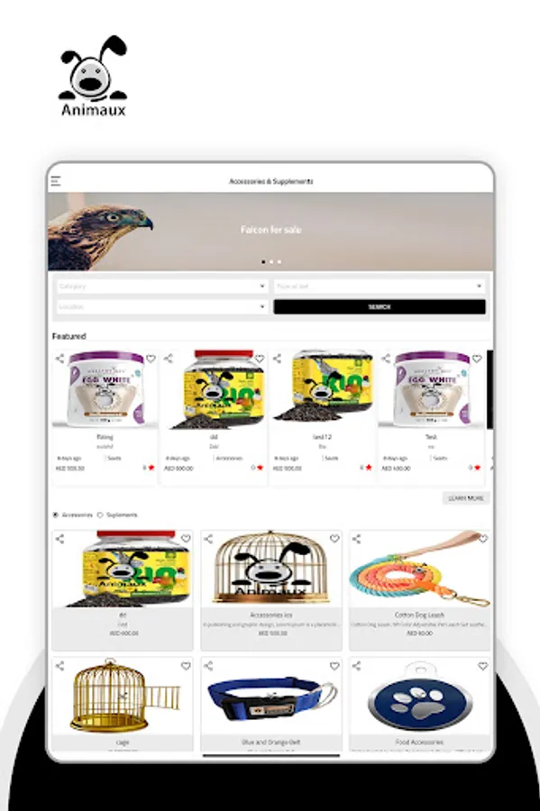 Animaux, the online marketplace connects buyers and sellers for pets and pets accessories and supplements.