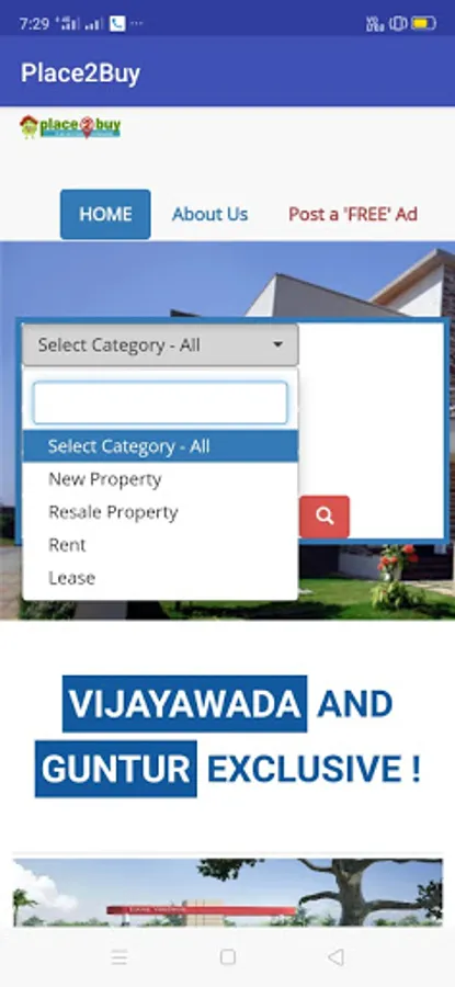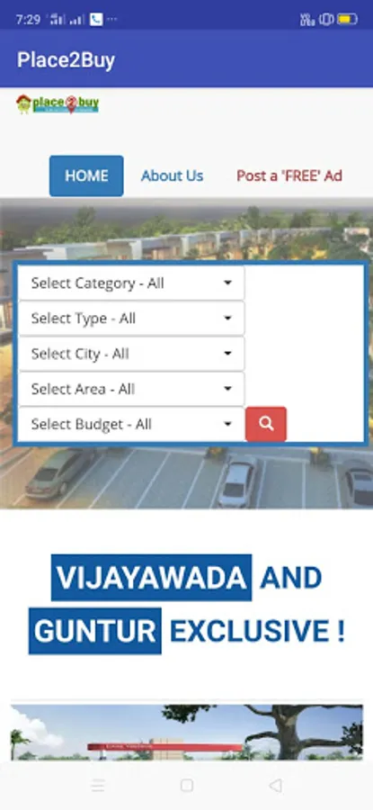 We Place 2 Buy (www.place2buy.in) started with strong Determination and Dedication as the unstoppable growth of the twin cities Vijayawada and Guntur made them the dream destinations for right investment. We're intended to have our role in the development of Vijayawada and Guntur. That's why we're publishing the complete details of the seller like Photos, Videos, Location, and property details in this portal. Especially this portal is highly useful to the people who want to buy properties which is easily operable and highly comfortable for Telugu people. We hope to give latest updates of your properties through this portal. And we heartfully hope and expect your support as well.