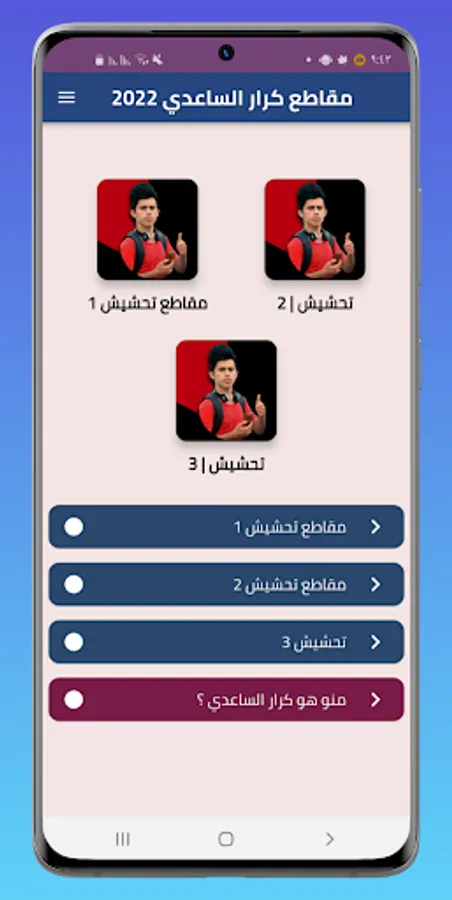 It includes clips and songs for the beloved Karar Al-Saadi clips with high quality and ease of use of the application on your Android device