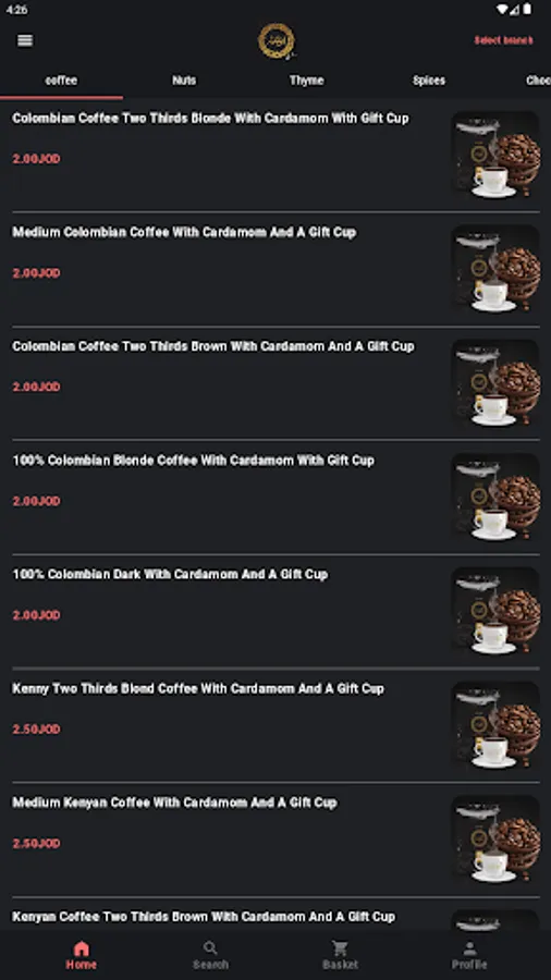 Abu Hania Roastery offers the best quality coffee, nuts, thyme and chocolate. Order now through our application!