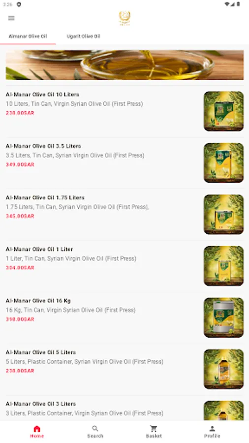 Olive oil, spices, dried fruits and all kinds of food products. Order now through our app