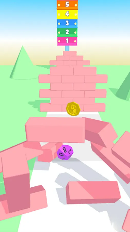 Collect money, upgrade the slingshot, buy new dices and complete all the levels!