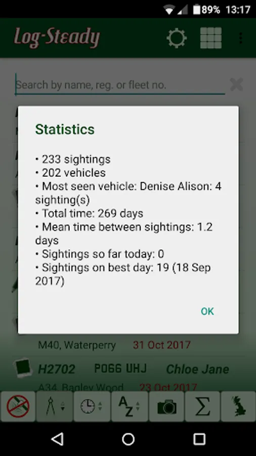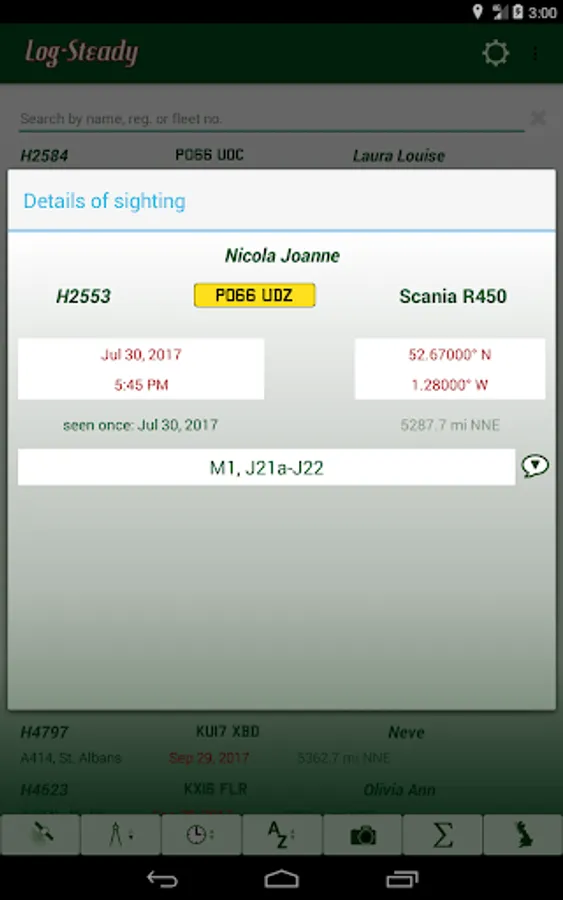 This app enables you to log your sightings of Stobart Group vehicles quickly, and even attach photos to your sightings. It tells you how many times you have seen each vehicle before, and plots your sightings on a map based on GPS co-ordinates. It includes details of over 9000 current and former vehicles operated by Stobart Group and its associates, including Eddie Stobart Limited, Stobart Renewable Energy, Stobart Rail, Stobart Air, Stobart Ports, Stobart Automotive, Stobart Training, Stobart Power, WS Transportation, James Irlam, O'Connor, Explore Transport and more.