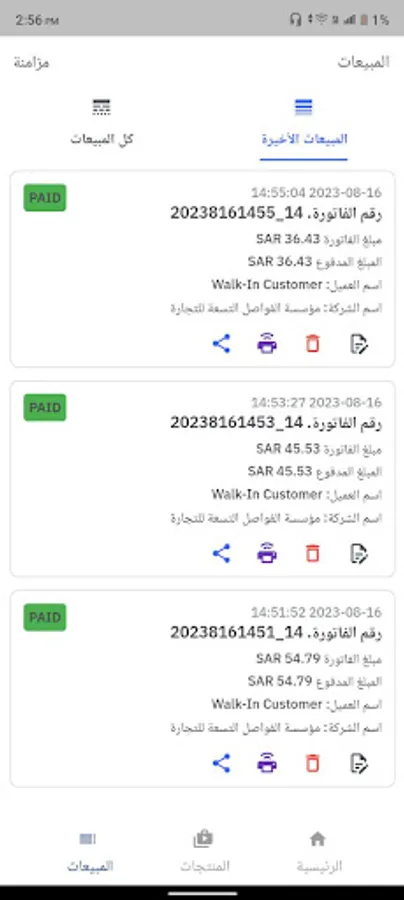 إحدى مزايا برنامج المعاصر هي إمكانية الوصول إليه في أي وقت ومن أي مكان، مما يتيح للمستخدمين إجراء العمليات المحاسبية بمرونة وسهولة. يشمل البرنامج على عدة أقسام تتعلق بتفاصيل الأعمال المحاسبية للمبيعات، مثل قسم المبيعات الذي يتضمن الفواتير والعروض والمرتجعات، وقسم المقبوضات والمدفوعات الذي يشمل سندات القبض والصرف المالي. كما يوجد قسم مخصص للمنتجات يعرض تفاصيل المنتجات المتوفرة في المنشأة التجارية.