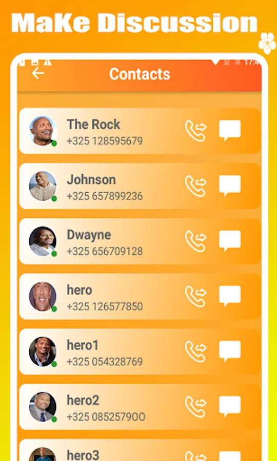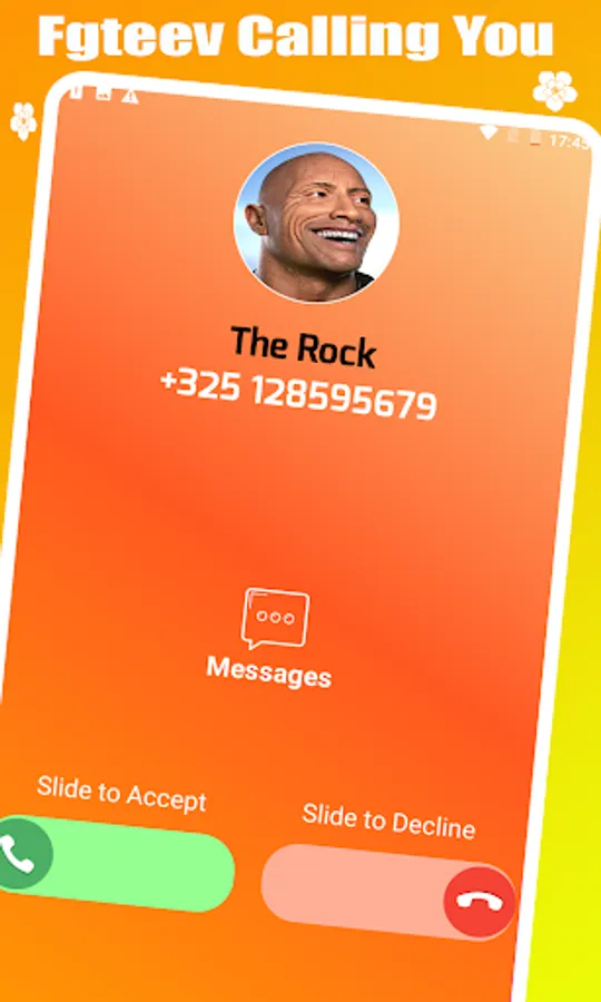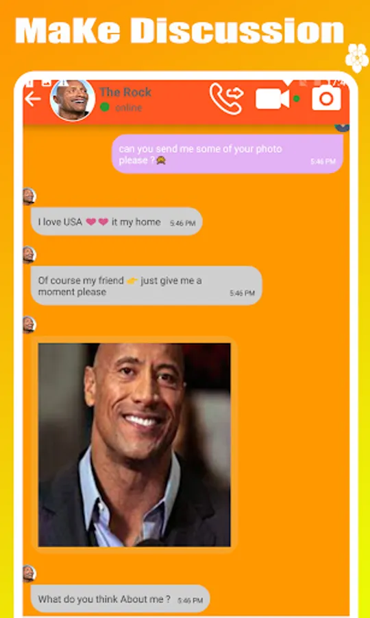 this fake call from Dwayne Johnson 'The Rock' fake call so this app allows you to make unlimited call with Dwayne Johnson 'The Rock' fake call and her friends.