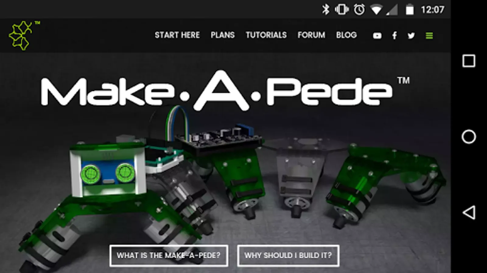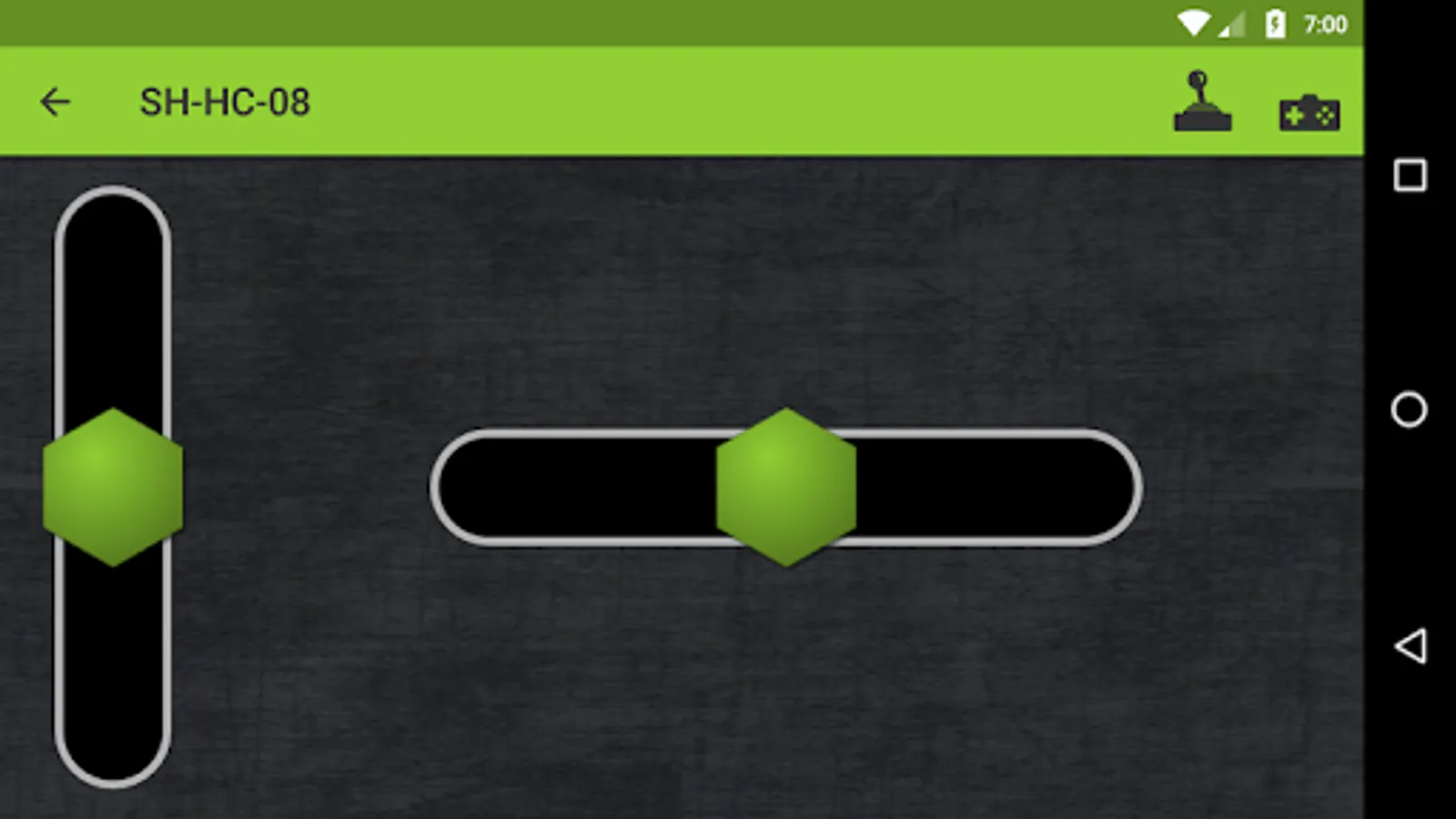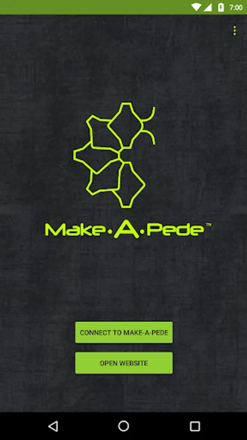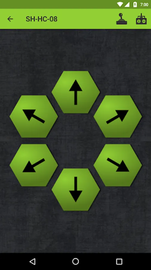 From the home screen click "Connect to Make-A-Pede". The app will then search for available Bluetooth devices. Your robot should appear in the list as "SH-HC-08". Once your robot has been found, select it from the device list. This will open the control screen. Use the icons at the top right of the screen to switch between control modes.