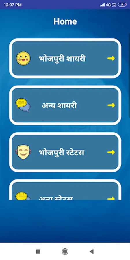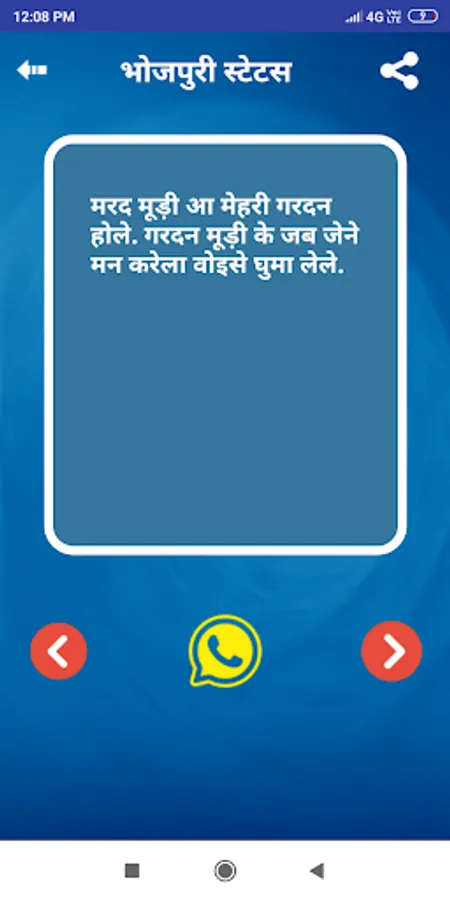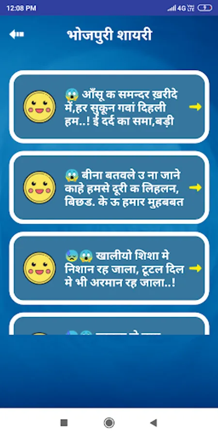 This app contains Largest Collection of Bhojpuri Shayari, Bhojpuri Status & Bhojpuri Jokes.