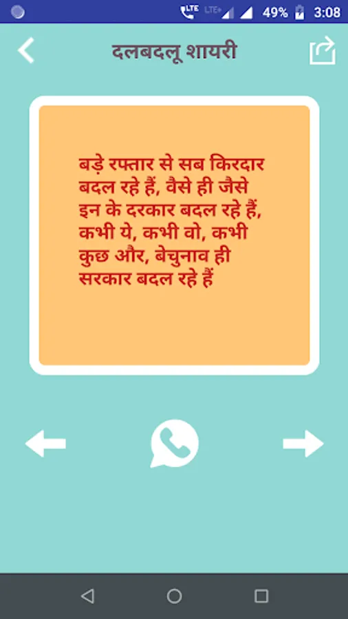 2. Share Hindi Dal badlu Shayari Status with all social media apps