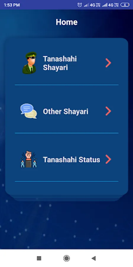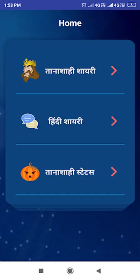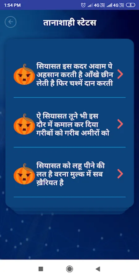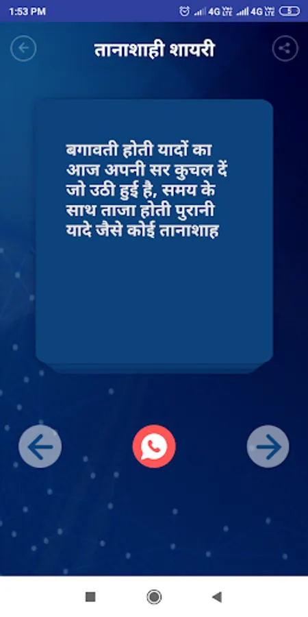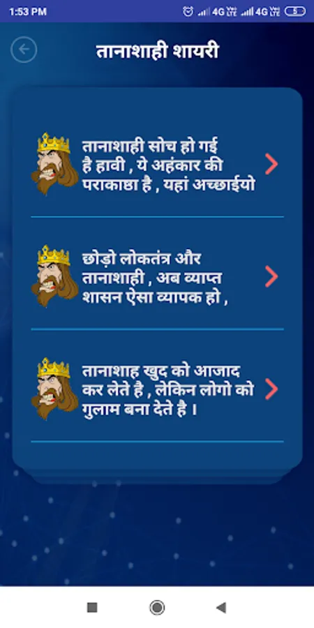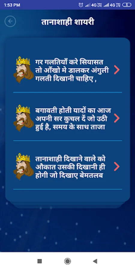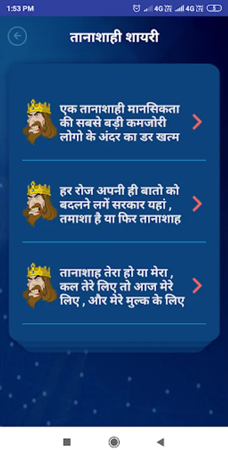 This app contains largest collection of Tanashahi Shayari in Hindi.