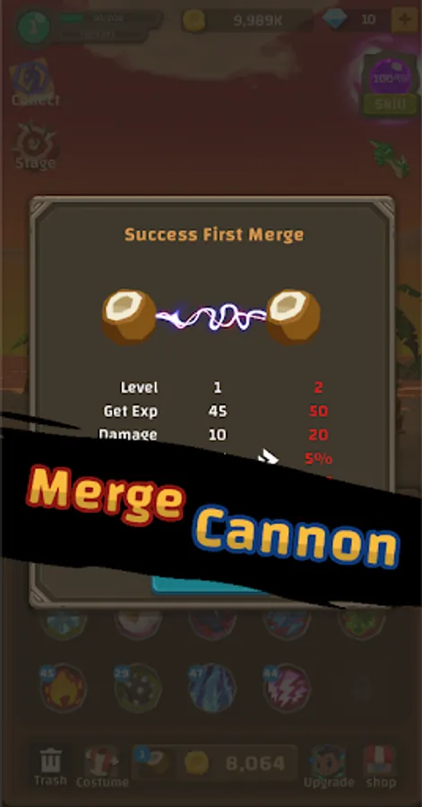 - If you merge same weapons, you can level up and move to other maps with more slots.
