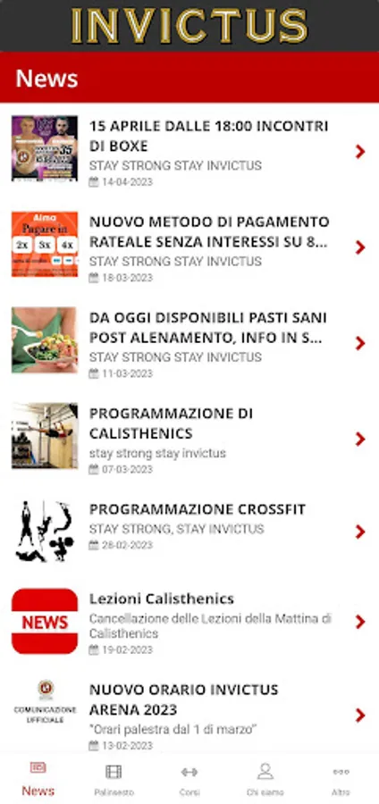 Through the app Invictus members can: - Be informed and updated with push notifications about new products, promotions, initiatives gyms Invictus Lab and Academy;
