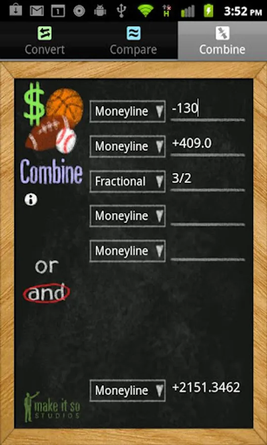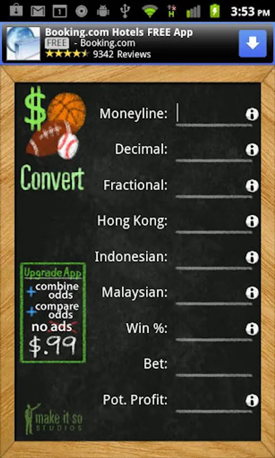 This app is useful for betting on any sport, including football, soccer, baseball, basketball, hockey, golf, and horse racing. Often when you look at odds from different bookies or sites, they are in different formats, especially ones based in different countries or continents. This app will help you with the conversion and tell you where you are getting the best value.