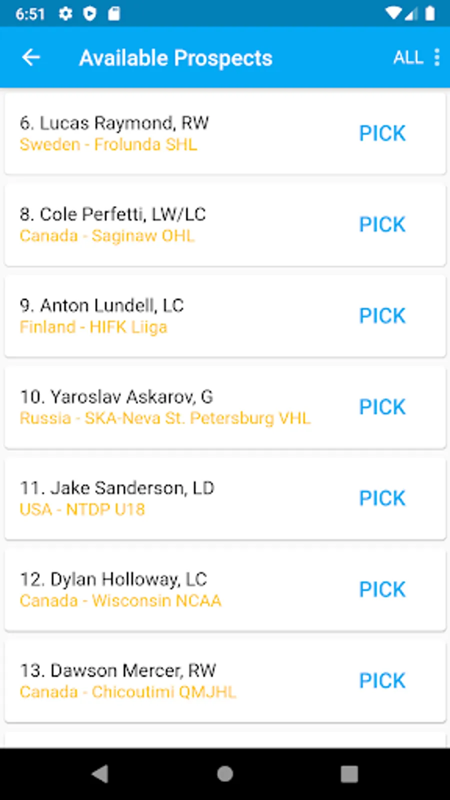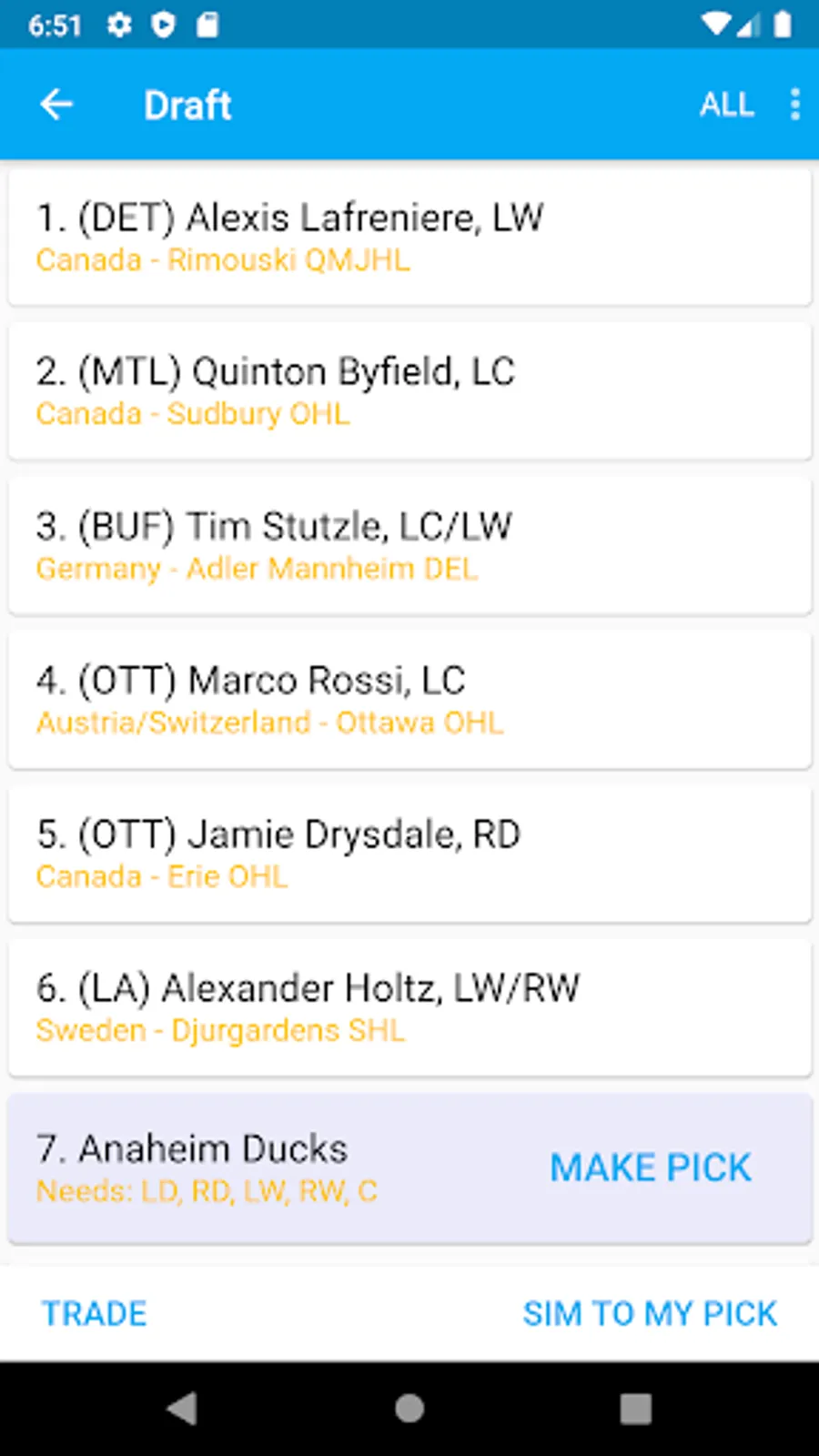 Simulate entry drafts for your favorite pro sports leagues.
