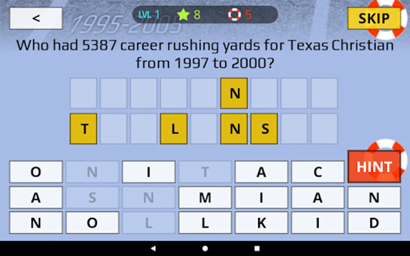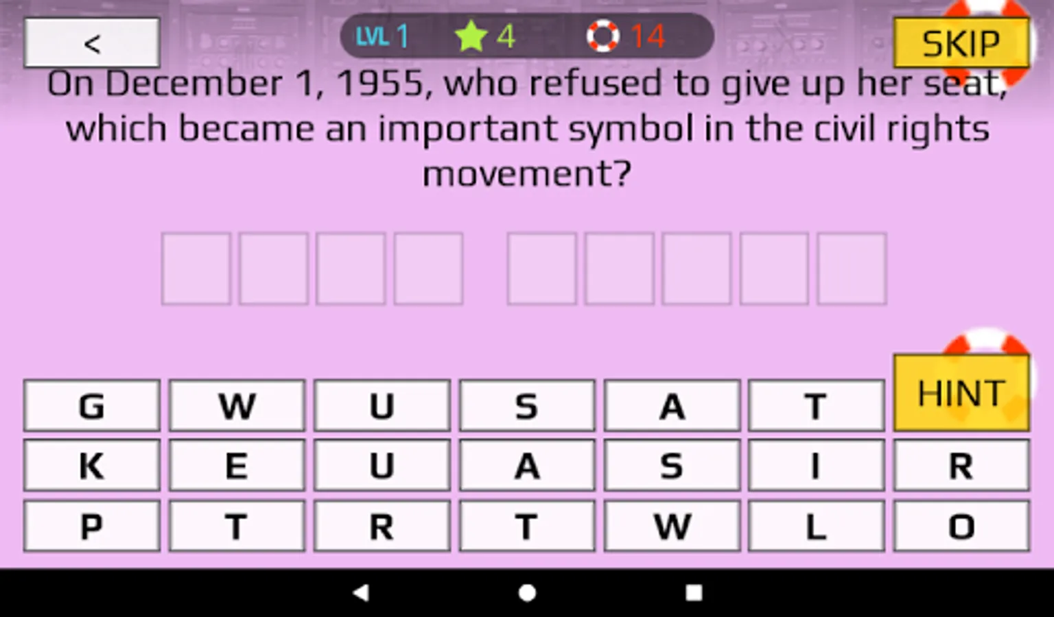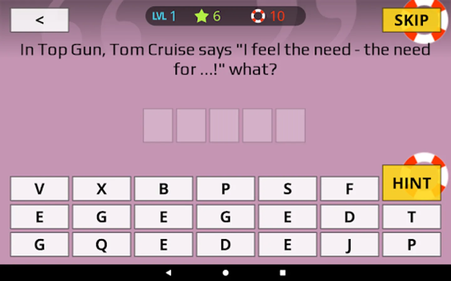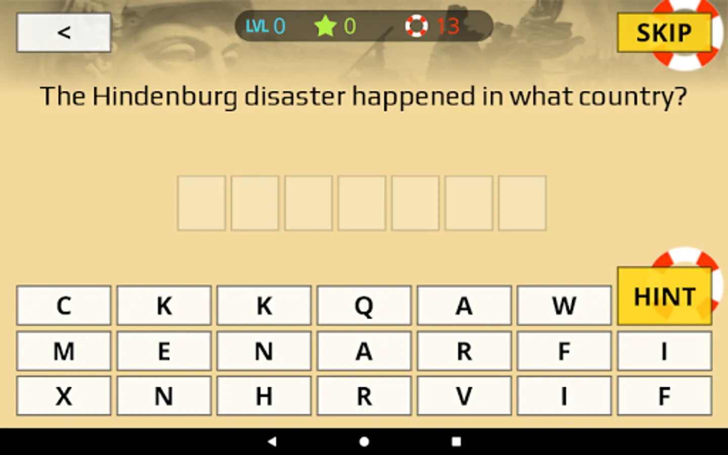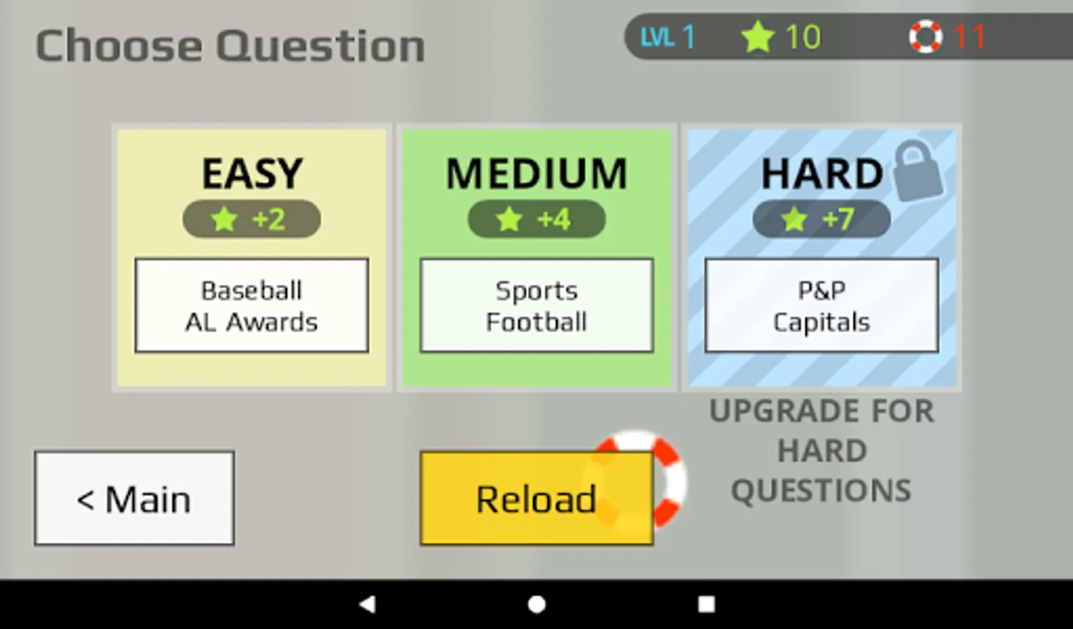 Free LITE VERSION has access to half the EASY and MEDIUM questions, and no HARD questions. Upgrade to FULL VERSION to access all questions pursuit. Upgrading will also remove all ads and increases Level Up Hints bonuses by x4.