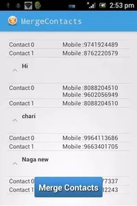 5. Merge Contacts : (ProFeature) : Multiple Contacts with Same Contact Name but Different Numbers ? Use this feature to Merge Contacts, Note : It works only with number based contacts not email ids