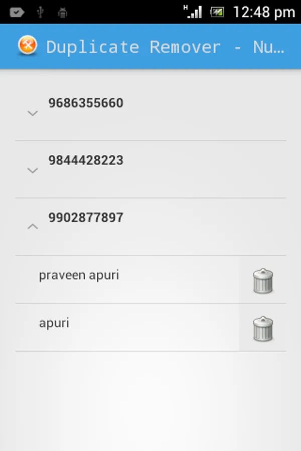 4. Duplicate Contacts Manager- Name Based : (Free Feature) Same Contact Name having different Numbers ? No problemoo its solved here too, Option to select and retain the correct name - number combination