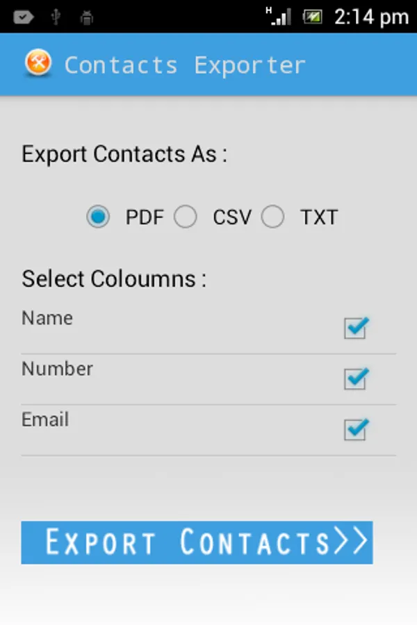 8. Contacts Exporter: (Free Feature) Option to export all your contacts details in PDF,CSV and Txt Format.