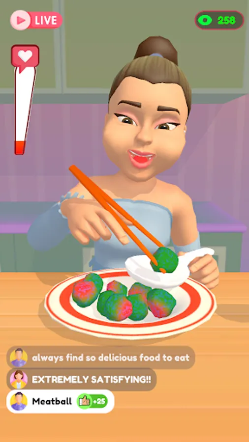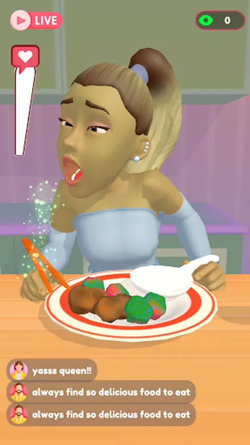 Eat delicious foods requested by viewers to your video and see how your character will react!